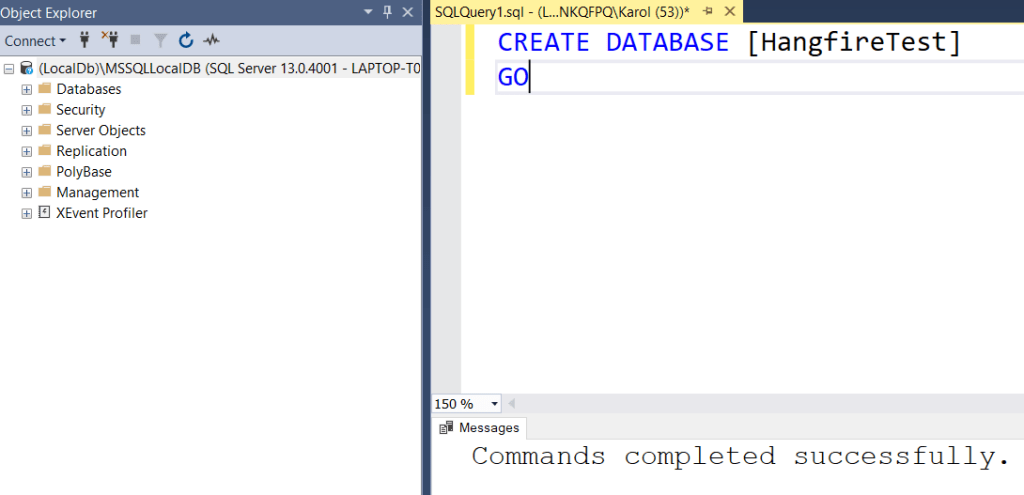"Data Source=(LocalDb)\MSSQLLocalDB; Database=HangfireTest; Integrated Security=True;"