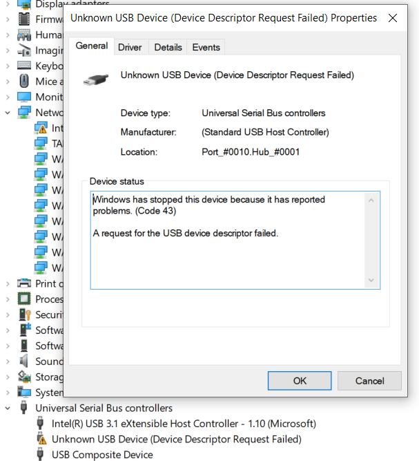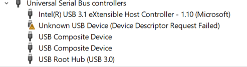 Unknown USB Device (Device Descriptor Request Failed)