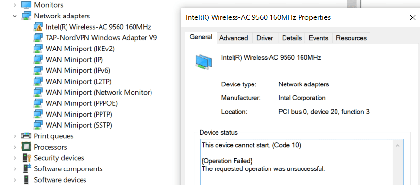 Error (status): This device cannot start. (Code 10)
