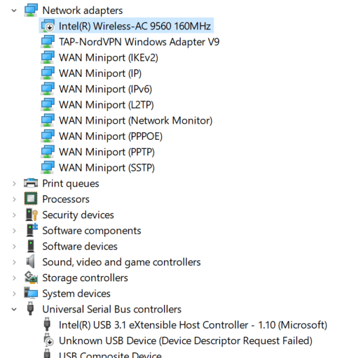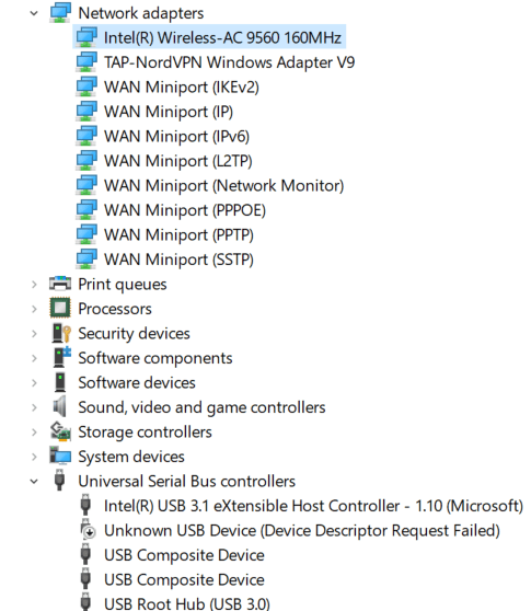 Problem with disabled WiFi and Unknown USB Device (Device Descriptor Request Failed)